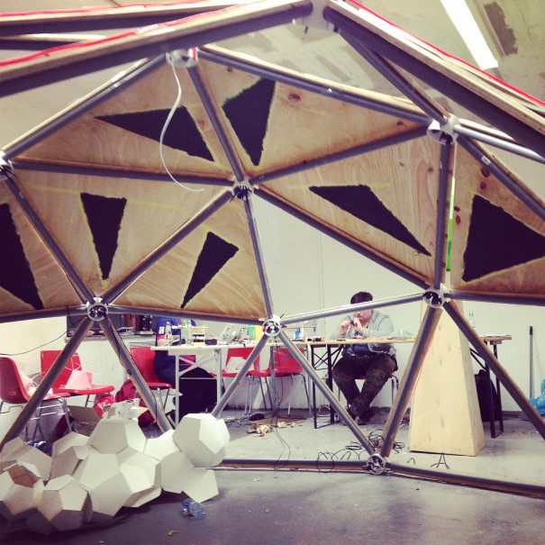 Dome with 1/4" plywood panels for Art Fair in Berlin, Germany.