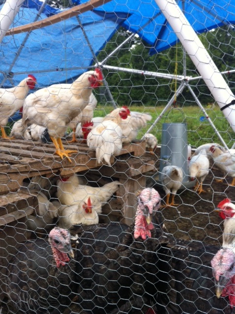 Chickens and Turkeys are safe inside the Geodesic Chicken Coop